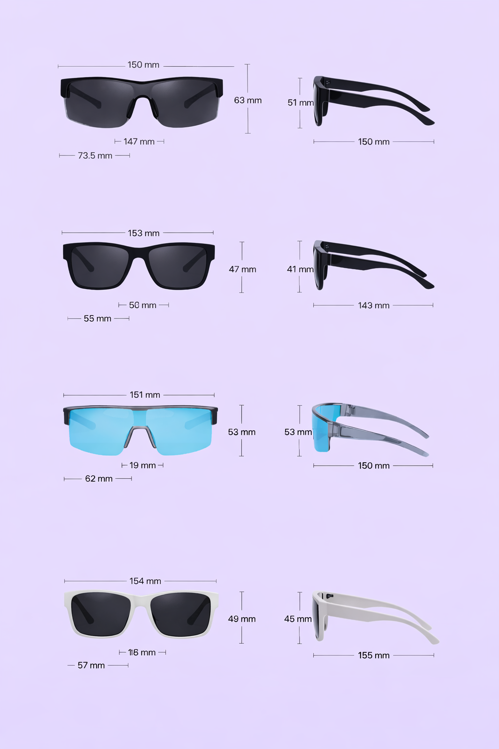 כל זוג כולל עדשות מקוטבות שמפחיתות סנוור ושומרות על ראייה חדה ונוחה,